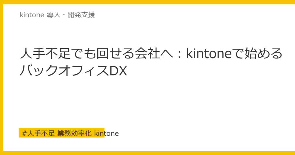 このような環境では、「採用で解決する」という戦略には限界があります。経営者や管理職が今選ぶべきは、「少ない人数でも業務が回る仕組みをつくること」——すなわちDXと業務効率化への投資です。そしてその中核として注目されているのが、kintone(キントーン)を活用したバックオフィスの自動化・デジタル化です。